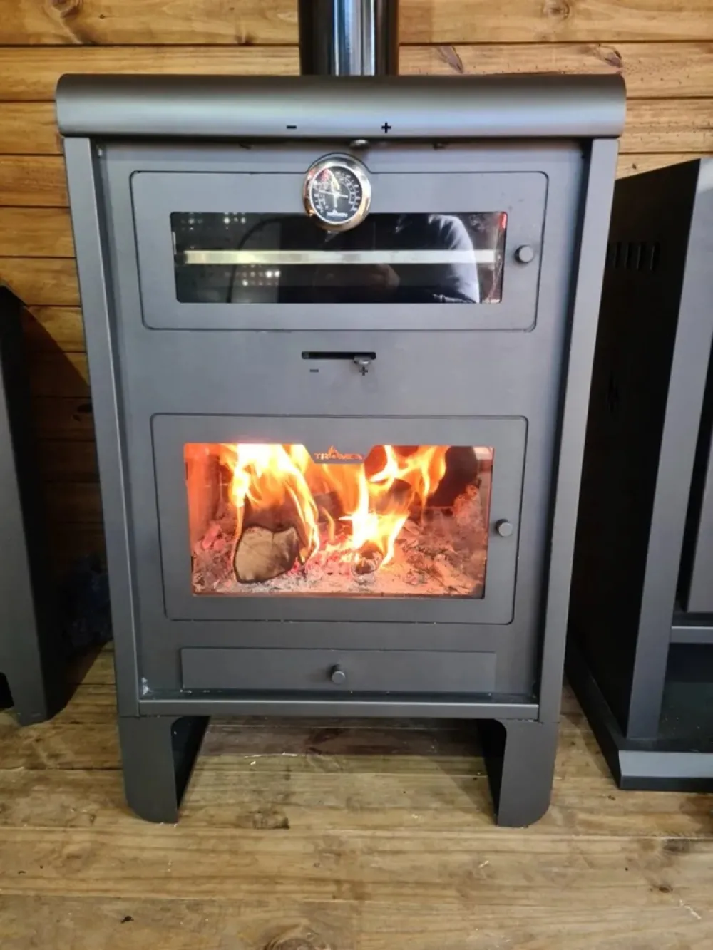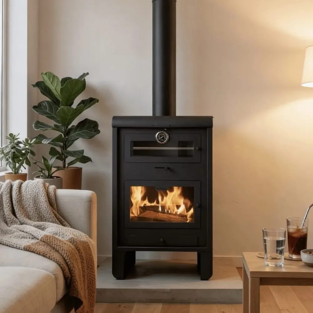 Estufa Tromen P18 de la línea Pehuen, diseñada para brindar calor y estilo a tu hogar. Con doble templador para una combustión completa, encendido rápido y cajón cenicero para mayor comodidad. Además, cuenta con un horno con calor envolvente y bandeja inoxidable, junto con un práctico espacio inferior para guardar leña. Potente con 18000 kcal, ideal para climatizar hasta 160 metros cuadrados.